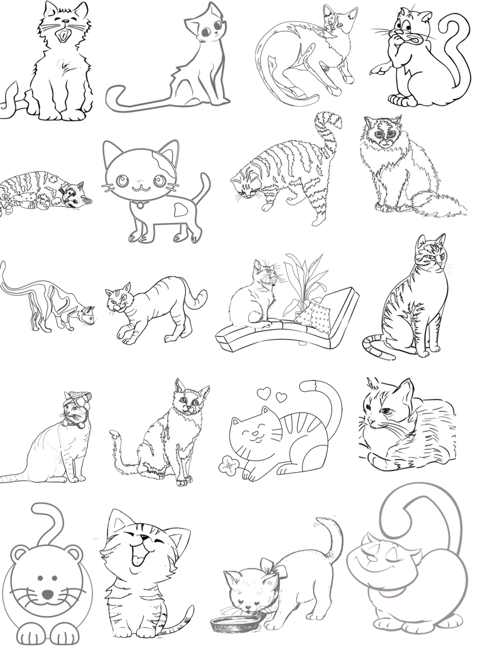 You will receive a PDF that has 40 images of cats for or you to color.
